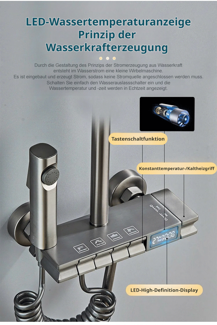 Intelligenter Duschkopf mit Digitalanzeige